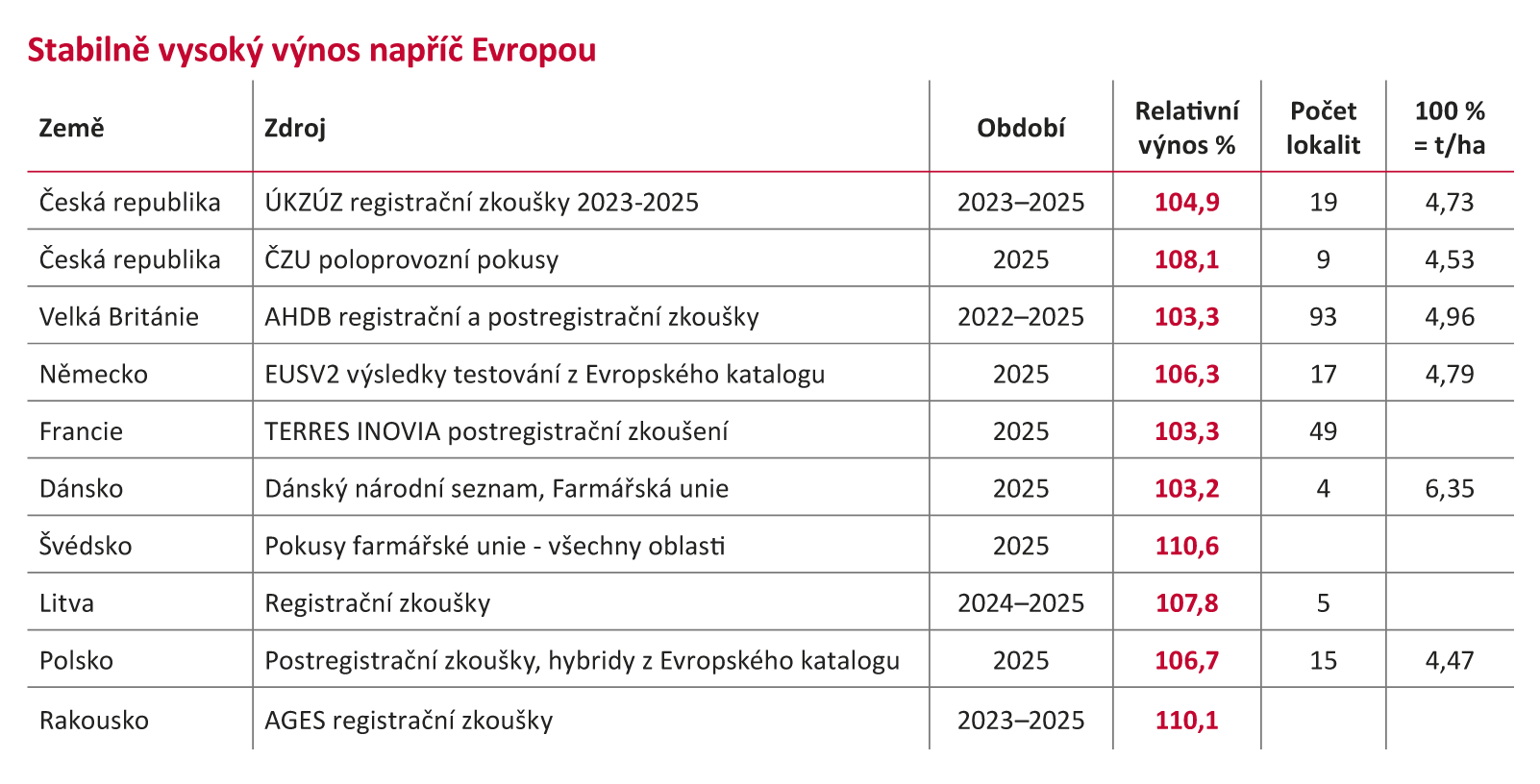 | ZDV Krchleby, a.s. | Kutná Hora | 35 | 5,04 | Průměr regionu dle šetření SPZO 3,04 t/ha | 2025 |