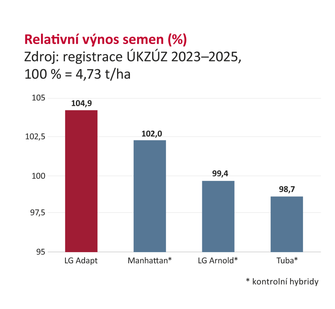 LG Adapt je schopný během svého vývoje a zejména v období tvorby šešulí remobilizovat maximální množství dusíku. Byl šlechtěn a prověřován jako N-FLEX hybrid.